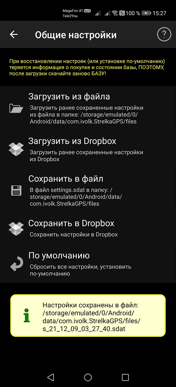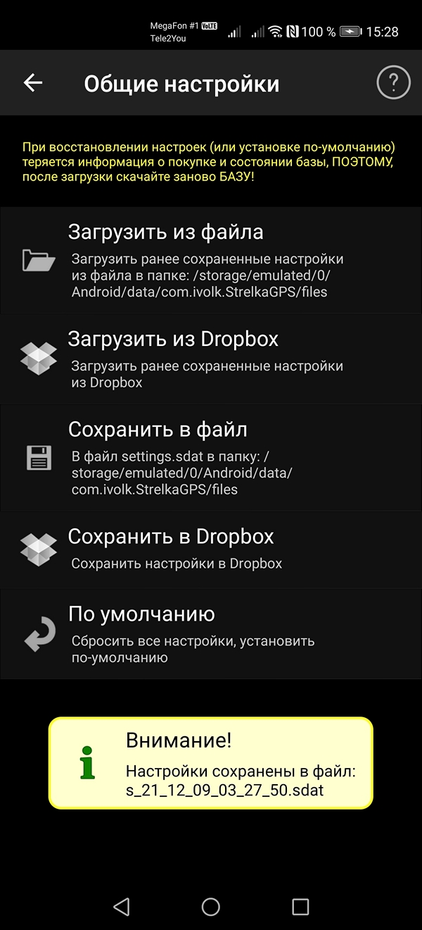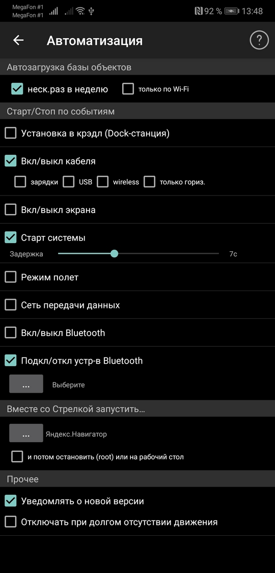 Общие настройки приложения СтрелкаОписание раздела "Настройки" главного окна программы. ![]() Возле каждого раздела настроек есть кнопка "i" с кратким описанием и рекомендациями. Справа вверху можно нажать на знак вопроса и прочитать подробные инструкции по каждому из разделов настроек. ПрофилиТри профиля: Трасса, Город/Мото, Мегаполис. Программа меняет настройки объектов при переключении профиля. Например, для трассы можно настроить бОльшие дистанции, другие звуки, форму окон или значения превышений. Профили можно переключать вручную, автоматически и по событиям. Город можно поменять на Мотоцикл с включением опции "только камеры снимающие задний номер". Подробно о профилях в приложении Антирадар Стрелка. АудиоканалКак сделать, чтобы громкость звуков от Стрелки была тише или громче плеера. Как выключить звуки во время телефонного разговора. Как выводить звук и в автомагнитолу и в динамик. Как приглушить звук плеера во время голосовой фразы при проезде радара. . Подробно о настройке аудио в приложении Антирадар Стрелка ![]() Автоматизация, внешнее управлениеПозволяет автоматически запускать рабочий режим программы при различных действиях, автоматически загружать базу из интернет, запускать другие программы совместно с рабочим режимом и поддерживает внешнее управление (например Tasker или другие программы). Подробно об автоматических действиях Антирадара Стрелка Настройки экрана, оформления, окон-уведомлений, летающей кнопки.Как поменять цвета окон, фона, надписей, иконок, изменить тему оформления Как настроить размер и положение всплывающих окон Что такое летящая кнопка Что такое быстрые функции Как сделать чтобы экран не гасился Как быстро добавлять объекты на ходу И многое другое о настройке окон и оформления в Антирадаре Стрелка Настройка виджетовНастраивается прозрачность и окантовка виджета и отображение скорости и ближайшей камеры. Обновление скорости и камер забирает значительное процессорное время, поэтому без особой надобности устанавливать эти галочки не рекомендуем. На оригинальных лаунчерах виджеты растягиваются. Также есть настройка коррекции размера шрифтов в %. Это сделано для лаунчеров, поддерживающих растяжение только частично или некорректно. ГолосаВыбор голоса для оповещений производится через Интернет. При первом обращении загружается список возможных голосовых пакетов. Напротив каждого есть кнопка "прослушать" - доступ только при наличии интернета. При нажатии на галочку пакет либо скачивается из Интернет, либо (если был скачан ранее и файлы не изменились) предлагается его скачать заново или просто включить. ДополнительноВывод уведомлений - позволяет отправлять уведомления на "умные часы". Смотрите как это работает: в видеоролике на канале SAMSUNG PROSTO Сохранение, восстановление всех настроек и настройки "по-умолчанию"Сохранение всех настроек делается в файл sdcard/Android/data/com.ivolk.StrelkaGPS/files/sXXX.sdat в основной памяти (где XXX - дата). При восстановлении настроек или при сбросе "по-умолчанию" лицензия становится LITE. Для восстановления PRO нужно заново скачать базу!!! "По умолчанию" позволяет вернуть все настройки в исходное состояние. ![]() С 2022года появилась возможность сохранять настройки в dropbox. Ваши настройки будут храниться в Вашем облаке. Появится папка Приложения, а в ней папка strelka. При первом подключени