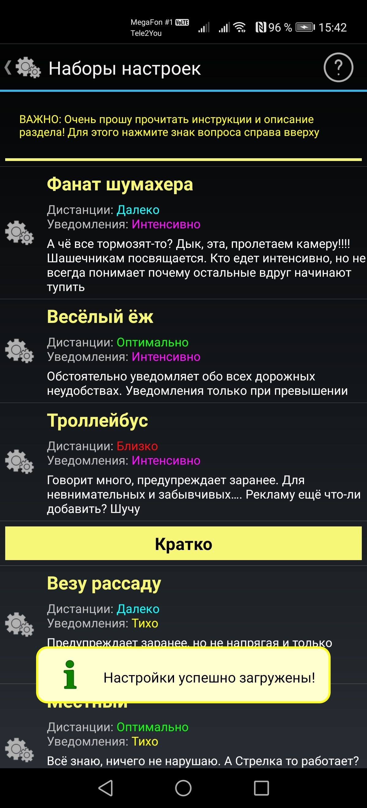 Готовые варианты настроек- Как быстро настроить уведомления в приложении Антирадар Стрелка?
