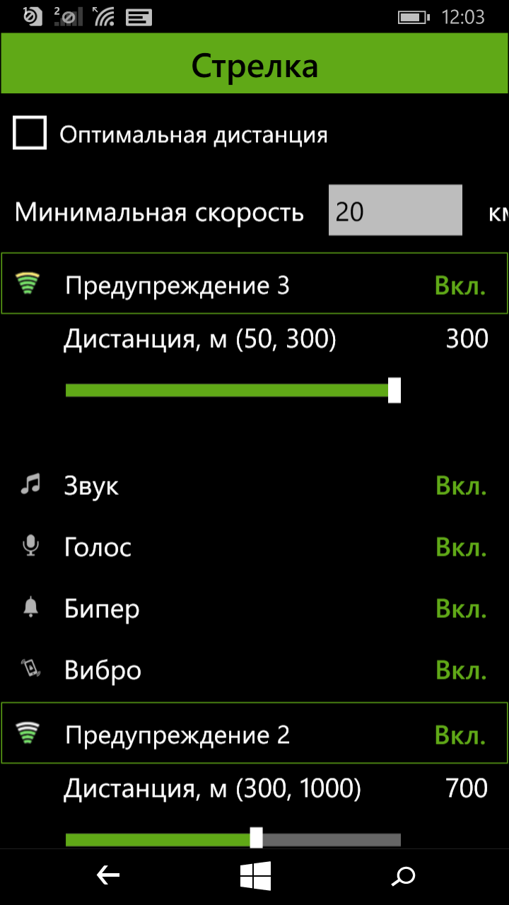 Как и версии под Android и iPhone, антирадар Стрелка имеет гибкие и многочисленные настройки.