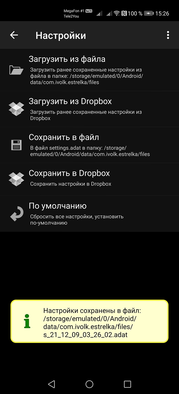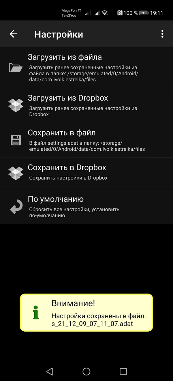 Настройки Антирадара еСтрелкаБаза камер видеофиксации ГИБДД и объектов Антирадара №1 еСтрелкаИнформация о базе камер видеофиксации правонарушений, камер скорости, контроля разметки и обочины, парковочных, измерения средней скорости, контроля полос гортранспорта. Настройки автоматических действий Антирадара еСтрелкаПодробно о настройке старта Антирадара еСтрелка по событиям: "включение-выключения кабеля питания, Bluetooth, сети передачи данных, режима полет и т.п. Также здесь рассмотрена автоматическое обновление базы и запуск сторонних приложений Настройки аудио Антирадара еСтрелкаИнформация о настройке аудиоканала Антирадара еСтрелка, принудительной и относительной громкости, управлении другими плеерами Настройка оформления Антирадара №1 еСтрелкаПодробно о картах и окнах в приложении-антирадарах еСтрелка, основное и всплывающее окно, окно-уведомление о камере ГИБДД Голоса в Антирадаре еСтрелкаГолосовые пакеты, женские и мужские голоса, выбор голосовой озвучки Антирадар еСтрелка для мотоциклистовНастройка приложений-антирадаров для мотоциклистов. Старт по подключению шлема, выбор профиля авто/мото в-зависимости от гарнитуры Дополнительные опции- Отображения спутников GPS - Сообщение разработчику - Статистика нарушений - Запись треков поездок - Статистика нарушений Сохранение, восстановление всех настроек и настройки "по-умолчанию"Сохранение всех настроек делается в файл sdcard/Android/data/com.ivolk.estrelka/sXXX.aradar в основной памяти (где XXX - дата). При восстановлении настроек или при сбросе "по-умолчанию" покупки и/или подписки не восстанавливаются. Для восстановления покупок нужно заново зайти в раздел Покупок. "По умолчанию" позволяет вернуть все настройки в исходное состояние. ![]() С 2022года появилась возможность сохранять настройки в dropbox. Ваши настройки будут храниться в Вашем облаке. Появится папка Приложения, а в ней папка strelka. При первом подключении нужно пройти авторизацию. Форма авторизации принадлежит компании Dropbox. Мы пароли не видим, не знаем и не сохраняем. После авторизации нам выдается только токен, с которым мы и работаем. ![]() В остальном сохранение и восстановление абсолютно идентично работе с файлами. Имена файлов можно менять в интерфейсе своего Dropbox. Главное, оставляйте тип (расширение). А знаете-ли вы, что попробовать многие из настроек можно в "демо-режиме" - долгое нажатие на кнопку старт на главном окне |