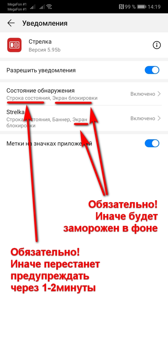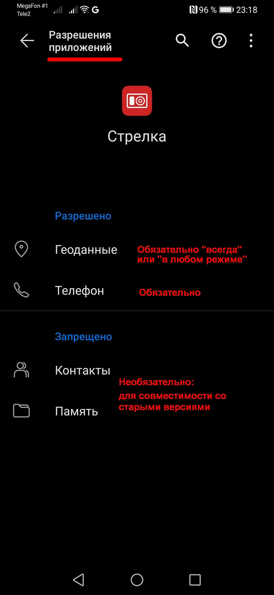 Настройки антирадаров в Android Видео: Установка, настройка, покупка приложений антирадаров - 2023 | RuTube | VK Подробнейшее ВИДЕО по настройке смартфона - 2021 | Zen | RuTube | VK Сразу после покупки антирадара Стрелка приложение попросит Вас установить несколько разрешений: на геолокацию, состояние телефона и фоновые окна, а затем попросит скачать базу камер. Для того, чтобы приложение нормально работало в фоне нужно отключить для него оптимизацию батареи и разрешить уведомления на экране блокировки. - Запустите демо-режим долгим нажатием на Старт. - Подождите уведомления о первой камере - и остановите, например через шторку. Затем зайдите в настройки смартфона. Выберите раздел «Приложения», затем «Все приложения» и найдите Стрелку. 1. В разделе уведомления обязательно включите вывод на экран блокировки. Затем "Состояние обнаружения" - Также разрешите вывод на экран блокировки. Это сейчас обязательное условие от гугла - иначе система будет "замораживать" приложение как только смартфон выключит экран ![]() ![]() Также ,если Вы пользуетесь режимом "не беспокоить" исключите этот режим для Приложения (второй скриншот). 2. Зайдите в само приложение (Стрелка или еСтрелка). Раздел: ОПЦИИ – Дополнительно – Отключить оптимизацию. Далее по подсказкам: выберите сверху «все приложения», найдите Стрелку и установите «запретить». ![]() 3. В зависимости от модели смартфона нужно отключить оптимизацию батареи: - для Huawei – в том-же разделе Приложения, что и в п.1. зайдите в раздел "Сведения энергопотребления" или "Использование батареи". - Отключите "Сообщать об энергоемкости". - Отключите "автоматическое управление" и оставьте все галочки. - для Xiaomi – в том-же разделе Приложения, что и в п.1. - зайдите в раздел: «Контроль активности» - и установите для «нет ограничений» – включите «автозапуск», иначе не будет работать соответствующий раздел в программе. ![]() 4. Основные разрешения приложение запрашивает при установке. Однако, если вы по каким-то причинам их не предоставили или что-то сбилось - это можно сделать вручную. ![]() Для других моделей смартфонов, а также для старых версий Андроид смотрите более подробные инструкции на нашем сайте ниже в общем разделе и в разделах по моделям смартфонов. Подробная информация + настройка предыдущих версий AndroidОсновные проблемы при работе на последних версиях Андроид связаны с: - настройкой геолокации - экономией батареи (различные режимы, опции, разбросанные в разных меню) - разрешениями (в т.ч. на всплывающие окна) Попробуем обобщить всё это 1. ГеолокацияВ настройках своего смартфона зайдите в раздел "Конфиденциальность и безопасность" , там Вас интересуют пункты Геоданные и Разрешения приложений. В некоторых телефонах раздел "Геолокация" (еще может называться "Локация", "Геоданные" или "Местоположение") вынесен отдельно. Для Андроид 10 В Геолокации нужно выбрать "Всегда" или "Разрешить в любом режиме" ![]() Для более ранних Андроид ![]() В Геоданных нужно проверить, чтобы метод обнаружения включал в себя слово GPS. И в разрешениях проверить, что у Стрелки есть доступ к геоданным. 2. РазрешенияНастройки смартфона - раздел "Приложения" - найдите приложение (например Стрелку) Зайдите в раздел "Разрешения". 1. Основные разрешения программа запросит у вас в самом начале использования. Но если что-то запретили - необходимо разрешить "Данные о местоположении" и "
