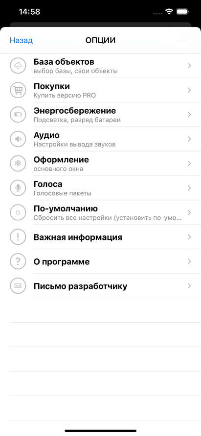 Антирадар еСтрелка для iPhone и iPadПрограмма-антирадар отображает на экране объекты по ходу движения автомобиля, указывает тип, расстояние, вашу скорость и ограничение. ![]() Кроме этого выдает звуковые и голосовые предупреждения об объекте по настроенным вами параметрам, вибрацией и бипером. Программа может работать в фоновом режиме (только звуковые уведомления, баннер, бипер и вибрация). Запуск основного процесса обнаружения объектов осуществляется большой кнопкой СТАРТ посередине. Для управления используются 2 кнопки настроек: ОПЦИИ и ОБЪЕКТЫ ![]() Также в программе доcтупны разные цветовые схемы и режимы отображения камер и объектов впереди: обычный, локатор и карта. Долгое нажатие на кнопку "Старт" запускает режим "Демо", эмулирующий проезд мимо семи камер. Ввиду ограниченности iOS сделать также как на Андроид невозможно. В яблоках нет возможности нарисовать окно "поверх всех". Поэтому программа отображает текущую и следующие камеры только будучи активной. В фоновом режиме доступны только баннер, звук, голос, бипер и вибрация. Тем не менее, приложение Антирадар Стрелка может работать совместно с навигаторами (например, Яндекс-Навигатор) и выдавать уведомление совместно с ними, а также может выдавать уведомление на экране блокировки. Антирадар Стрелка позволяет детально настроить уведомление отдельно для каждой из камер или для групп объектов или использовать единые для всех. В приложении также реализована широкая система настроек и опций. Доступна возможность загрузки как основной базы, так и любых других баз из текстовых файлов, добавление своих точек, выбор своих звуков, и т.п. Начало работы и особенностиПосле установки программы из AppStore необходимо загрузить базу камер и разрешить фоновое обновление и геолокацию. Обязательно поставьте для местоположения "Всегда"! Обо всем этом приложение вас спросит при первом нажатии на кнопку СТАРТ. Но если забыли или не разрешили - это можно исправить позже в настройках телефона. Подробнее об этом написано в разделе " Антирадар Стрелка - Частые вопросы". В рабочем режиме программа потребляет большое количество энергии, что может привести к быстрому разряду батареи. Поэтому рекомендуется при использовании программы подключать устройство к источнику питания, а также не забывать нажимать кнопку Остановить и принудительно закрывать программу, когда вы ее не используете! Интернет нужен только на время загрузки базы объектов. База является сборником из следующих источников: www.rd-forum.ru (ветка "Добавление координат стационарных камер"), speedcamonline.ru, poiplaza.com, сайт 4pda.ru раздел Навигация и точки, которые заносят сами пользователи (после проверки и фильтрации). Разработчики программы рекомендуют вам выполнять правила дорожного движения и скоростные ограничения. Также рекомендуем размещать устройcтво в автомобиле так, чтобы оно не мешало обзору. AppStore: https://apps.apple.com/ru/app/estrelka/id1544057500 Более подробная информация изложена в подразделах (см. меню) |